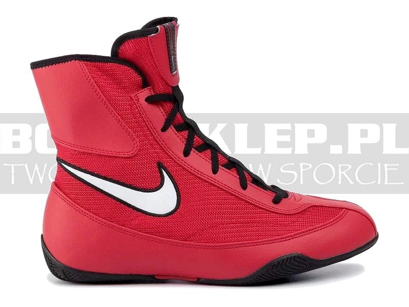 Buty bokserskie Nike Machomai Mid 2 red, najnowszy poprawiony model na 2020/21. Wykonane z wysokiej jakości poliestru i obszyciem ze skóry syntetycznej dla wzmocnienia konstrukcji, usztywnienia i podniesienia wytrzymałości buta. Budowa mająca zapewnić wysoki komfort noszenia, wygodę i możliwość trenowania wiele godzin. Materiał syntetyczny zapewnia wentylację i odprowadzanie wilgoci na zewnątrz. Doskonałe obuwie dla osób szukających dobrych i sprawdzonych butów do treningu i na zawody. Wersja cholewki została poprawiona, górna część chlewki otrzymała dodatkowe wzmocnienie dla zapewnienia łatwiejszego trzymania przy wkładaniu butów, szlufki w odniesieniu do poprzedniego modelu zostały poprawione dzięki czemu wyeliminowano możliwość przecierania się i niszczenia pętelek od szlufek. Zastosowanie lekkich elementów i sztywnej antypoślizgowej podeszwy poprawia komfort użytkowania. Specjalne wycięcia w podeszwie wpływają na płynność poruszania się po ringu niwelując przypadkowe ocieranie krawędziowe o podłoże przy szybkich krokach. Buty w porównaniu do poprzedniego modelu nie zmieniły się znacząco wizualnie producent poprawił elementy które teraz zapewniają większą funkcjonalność i trwałość butów.